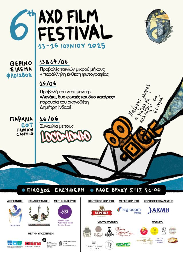 Το διεθνές φεστιβάλ κινηματογράφου Αλεξανδρούπολης AXD Film Festival επιστρέφει πιο ζωντανό από ποτέ για την 6η του χρονιά, με προβολές, έκθεση φωτογραφίας, ξεχωριστούς καλεσμένους και μια συναυλία γεμάτη ρυθμό με τους Locomondo!