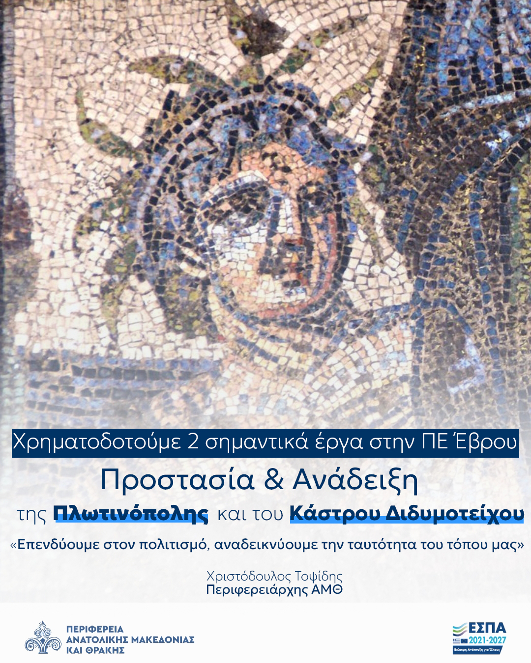 Ειδήσεις Η Περιφέρεια ΑΜΘ επενδύει στον πολιτισμό: Ανάδειξη Πλωτινόπολης και Κάστρου Διδυμοτείχου 10/11/2025