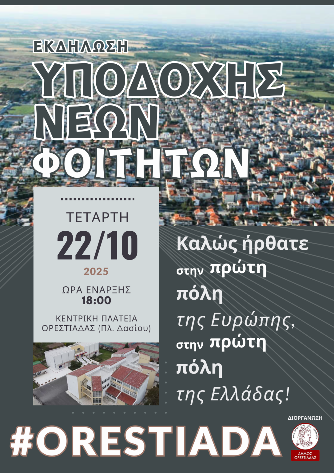 Ειδήσεις Η Ορεστιάδα υποδέχεται φοιτητές και νέους κατοίκους με μια γιορτή συνεργασίας και γνωριμίας 18/09/2025
