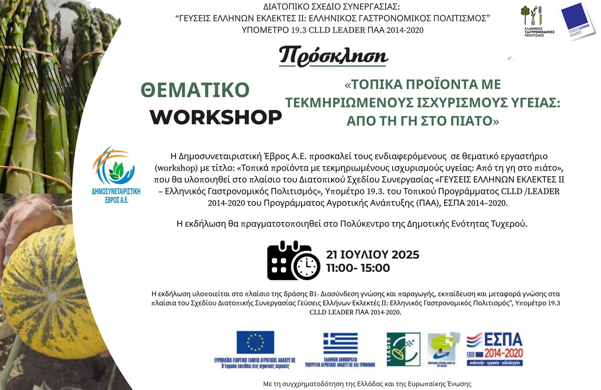 Ειδήσεις Δημοσυνεταιριστική Έβρος: Workshop «Τοπικά προϊόντα με τεκμηριωμένους ισχυρισμούς υγείας: Από τη γη στο πιάτο» 17/07/2025