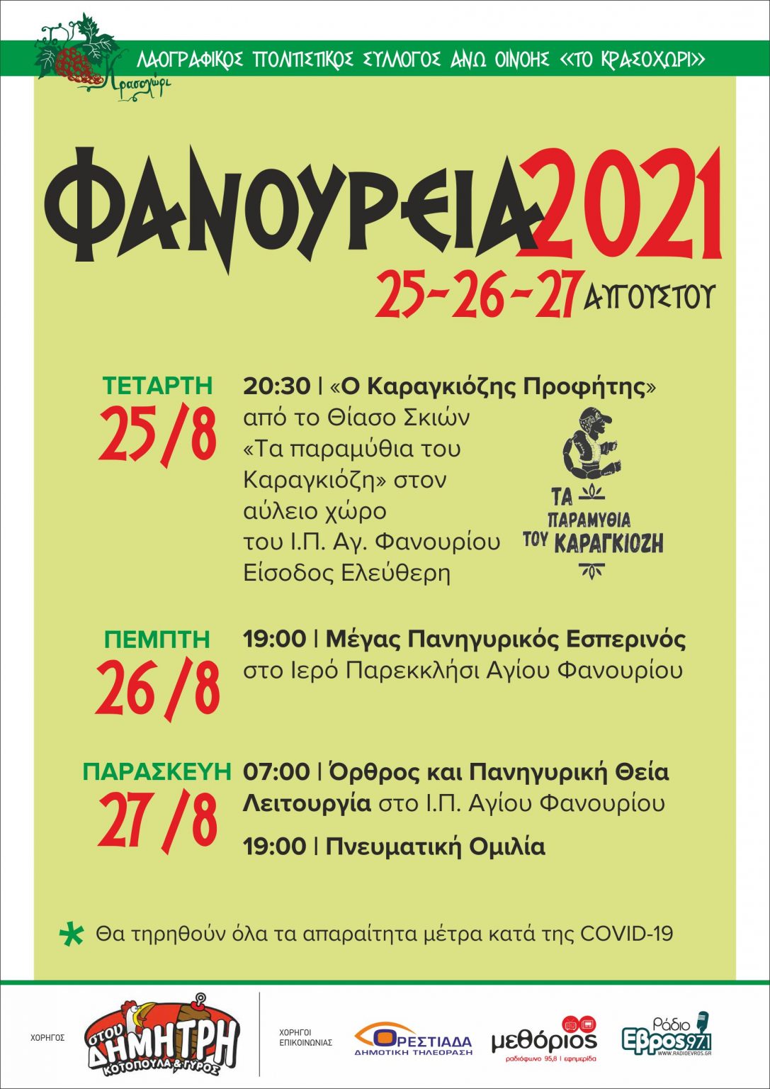 Πολιτισμός Ακυρώνεται το 13ο Φεστιβάλ Πολιτισμού Διδυμοτείχου «ΕΡΥΘΡΟΠΟΤΑΜΟΣ -REDRIVER 2021» 26/08/2021
