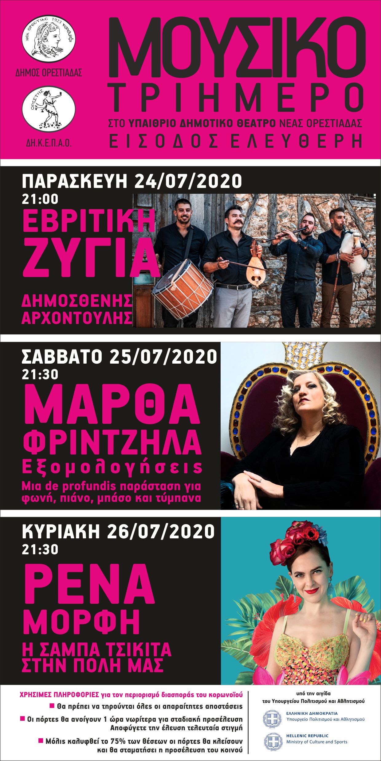 Πολιτισμός Μάρθα Φριντζήλα, Ρένα Μόρφη, Εβρίτικη Ζυγιά, Δημοσθένης Αρχοντούλης στο μουσικό τριήμερο – αντί «Άρδα» – στο υπαίθριο δημοτικό θέατρο Ορεστιάδας 26/06/2020