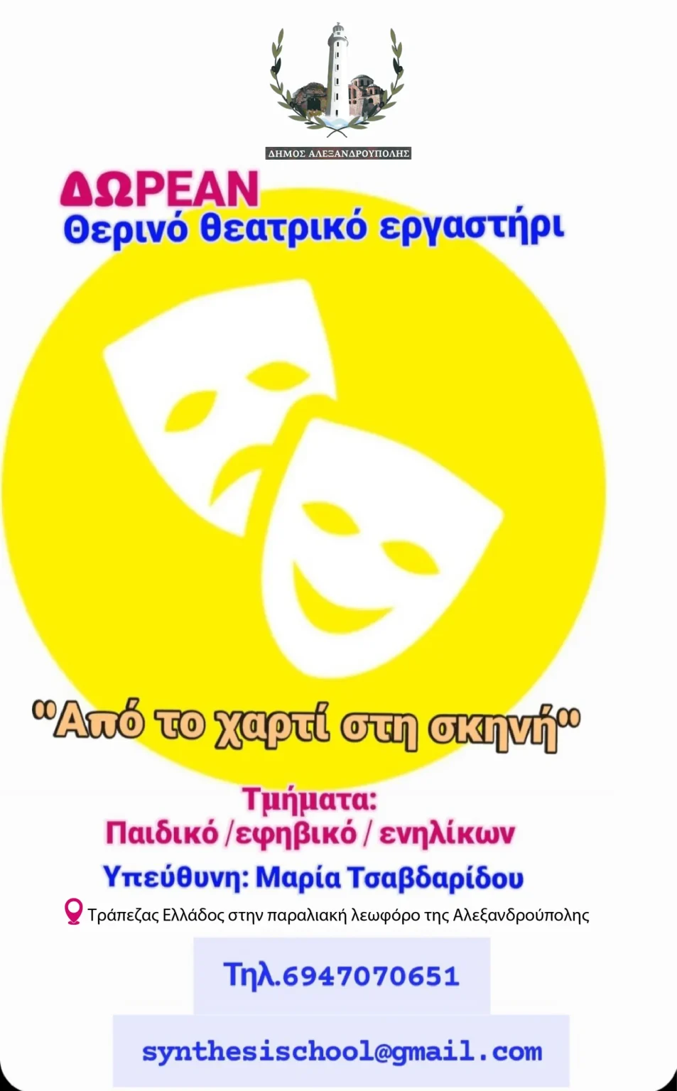 Πολιτισμός “Από το χαρτί στη σκηνή”- θερινό θεατρικό εργαστήρι από τον Δήμο Αλεξανδρούπολης 19/06/2025