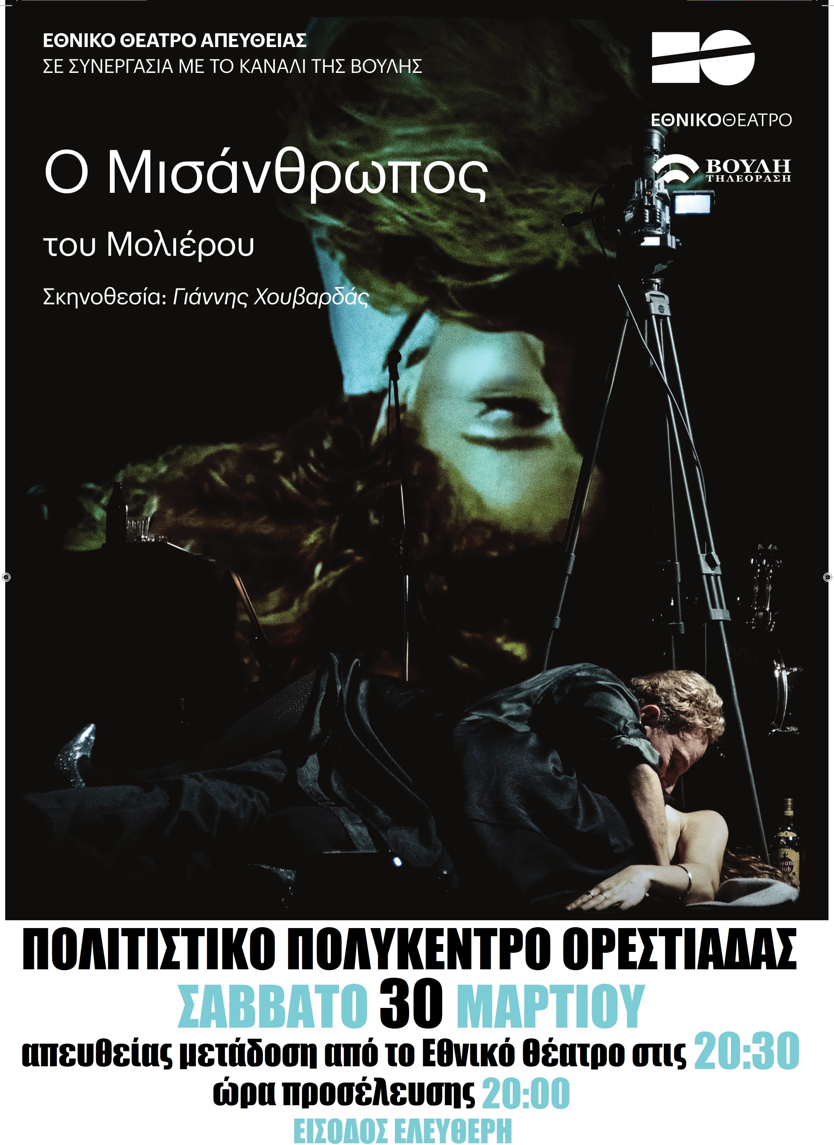 Πολιτισμός Προβολή της παράστασης με το έργο «Ο Μισάνθρωπος» από το Εθνικό Θέατρο στο Πολιτιστικό Πολύκεντρο της ΔΗ.Κ.Ε.Π.Α.Ο. 29/03/2019