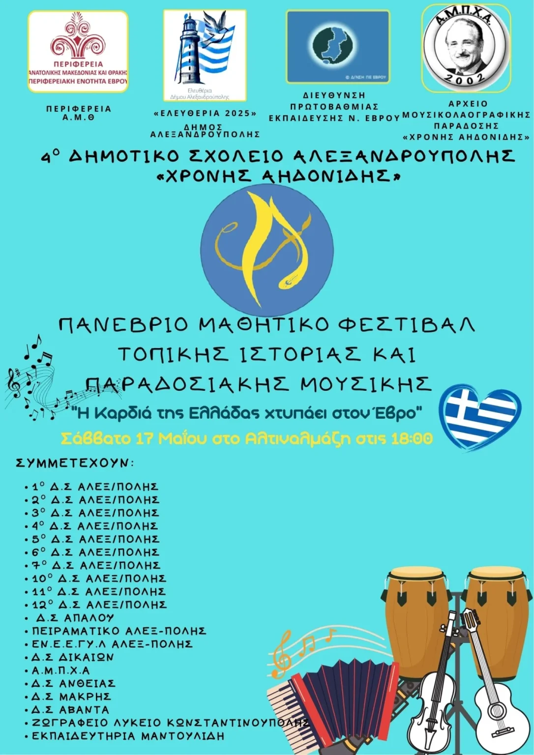 Πολιτισμός 3ο Πανέβριο Φεστιβάλ Τοπικής Ιστορίας και Παραδοσιακής Μουσικής: Η Καρδιά της Ελλάδας χτυπάει στον Έβρο 15/05/2025
