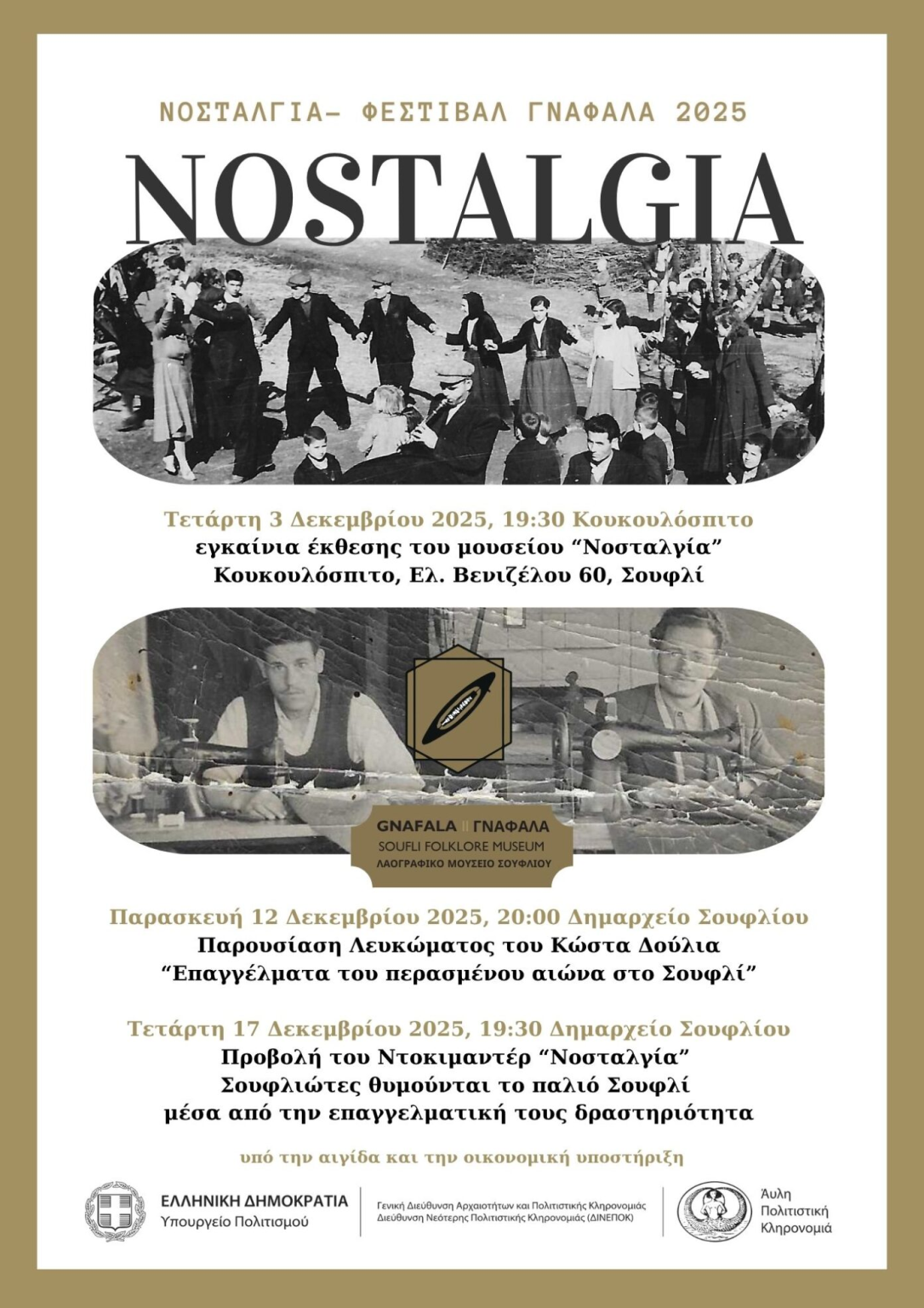 Πολιτισμός «Γνάφαλα 2025 – Νοσταλγία»: Ένας μήνας αφιερωμένος στην ιστορία και τα επαγγέλματα του Σουφλίου 20/11/2025