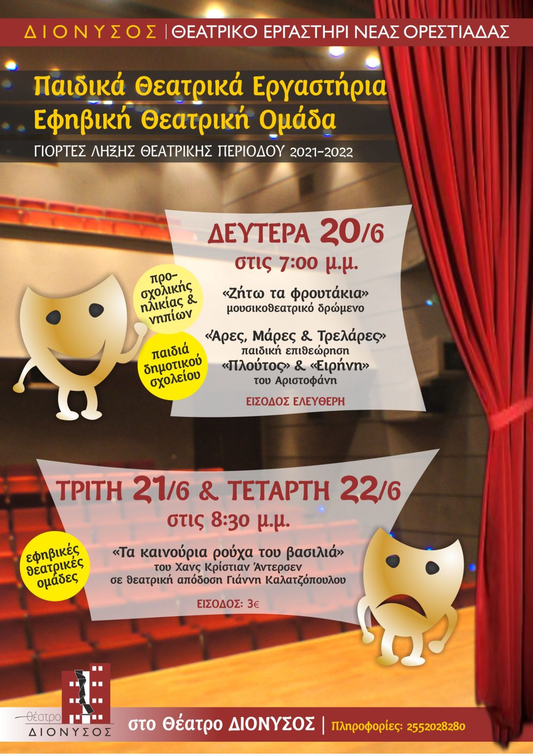 Πολιτισμός Τριήμερο θεατρικών παραστάσεων από τις παιδικές και τις εφηβικές ομάδες του ΔΙΟΝΥΣΟΥ 13/06/2022