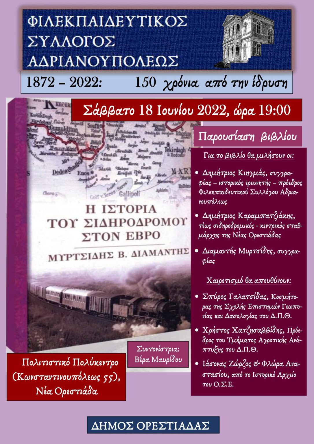 Πολιτισμός Παρουσίαση βιβλίου «Η ιστορία του σιδηρόδρομου στον Έβρο» στο Πολιτιστικό Πολύκεντρο Ορεστιάδας 15/06/2022