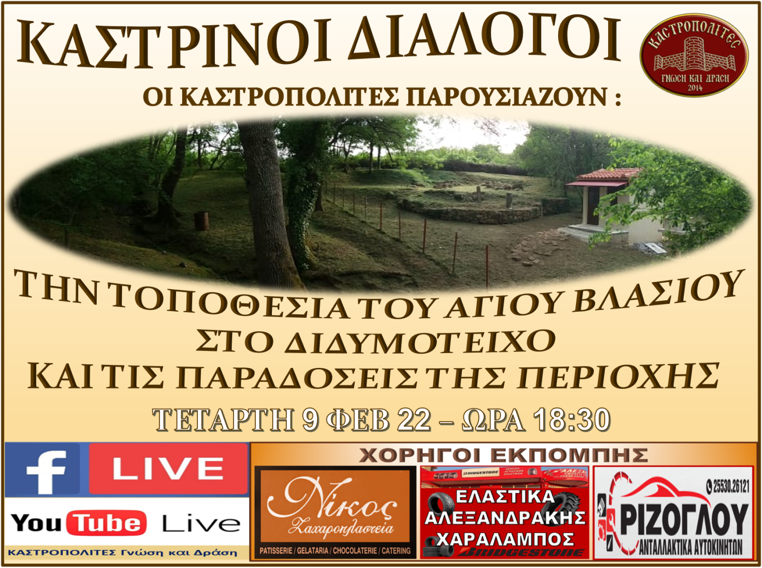 Πολιτισμός Νέο επεισόδιο από τους “ΚΑΣΤΡΟΠΟΛΙΤΕΣ” για την τοποθεσία του Άγιου Βλάσιου και τις παραδόσεις του Διδυμοτείχου 07/02/2022