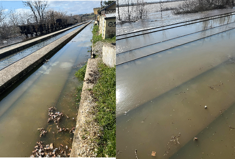 Η εικόνα της πλήρους κάλυψης των γραμμών από το νερό καταδεικνύει τη σοβαρότητα της κατάστασης και αναδεικνύει τα διαχρονικά προβλήματα αντιπλημμυρικής προστασίας στην περιοχή. Οι συνεχείς βροχοπτώσεις, σε συνδυασμό με την αύξηση της στάθμης των υδάτων, έχουν μετατρέψει μεγάλες εκτάσεις σε υδάτινες ζώνες, επηρεάζοντας τόσο τις μετακινήσεις όσο και την καθημερινότητα των κατοίκων.