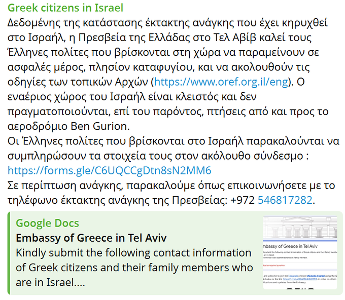 Η Πρεσβεία της Ελλάδας στο Τελ Αβίβ έχει εκδώσει σχετική ανακοίνωση. Παρακολουθείτε τον λογαριασμό της Πρεσβείας στην πλατφόρμα «Χ»: