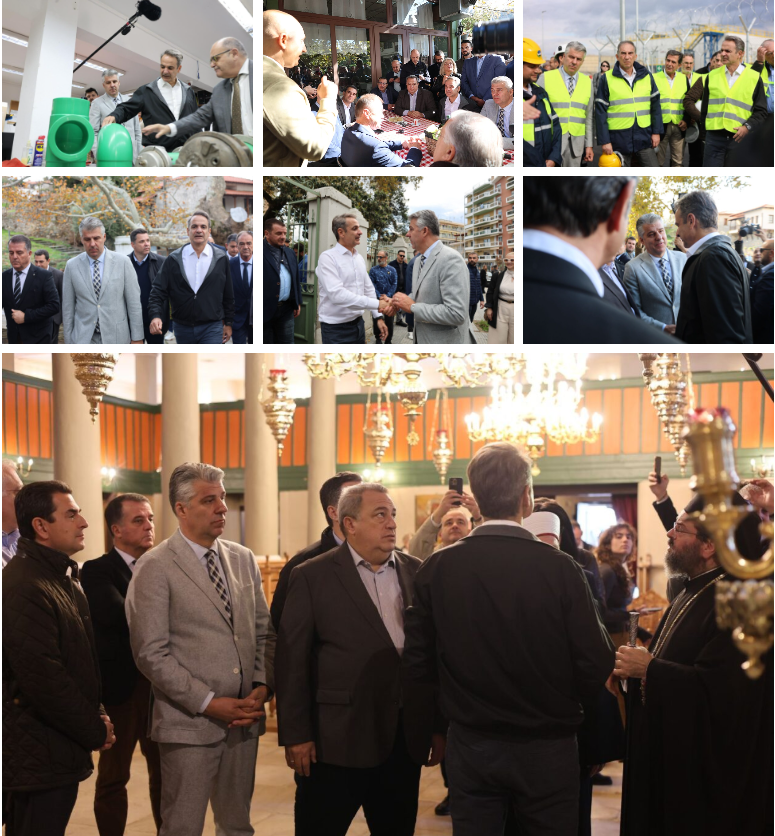 Ο Κυριάκος Μητσοτάκης συνοδευόταν από τον Υπουργό Ανάπτυξης Τάκη Θεοδωρικάκο, τον Υφυπουργό παρά τω Πρωθυπουργώ Αθανάσιο Κοντογιώργη, τον Υφυπουργό Εσωτερικών (Μακεδονίας–Θράκης) Κώστα Γκιουλέκα και τον Γραμματέα Πολιτικής Επιτροπής της ΝΔ Κώστα Σκρέκα, ενώ υποδέχθηκε τον Πρωθυπουργό ο Περιφερειάρχης Χριστόδουλος Τοψίδης.