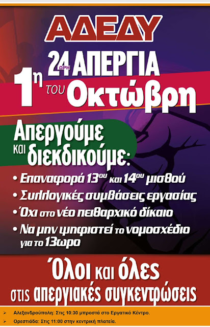 Η απεργία της 1ης Οκτώβρη πρέπει να ξεσηκώσει ολόκληρη την κοινωνία και να ταρακουνήσει την πολιτική σκηνή!
