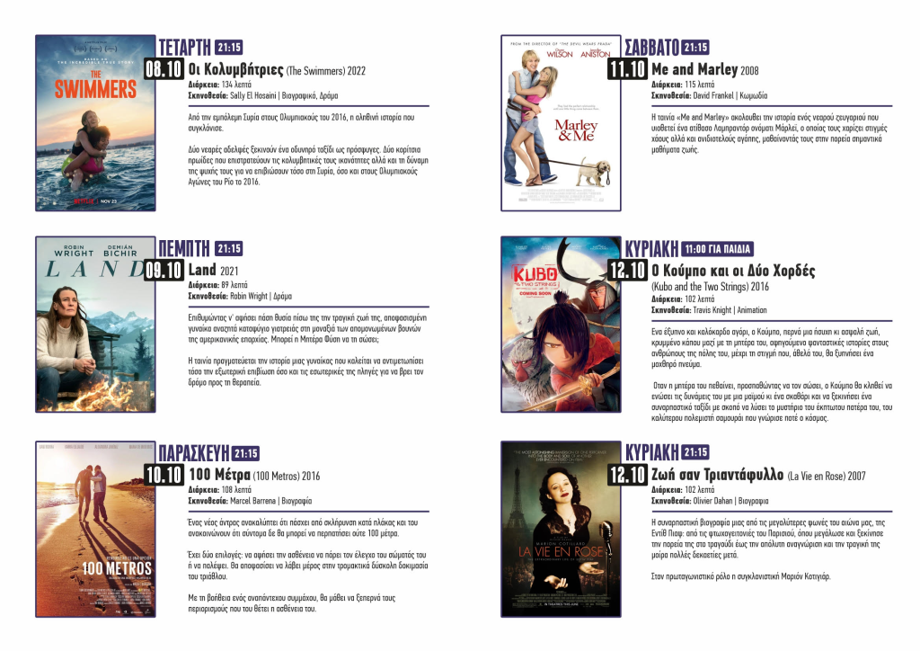 Το πρόγραμμα των ταινιών αναλυτικά: