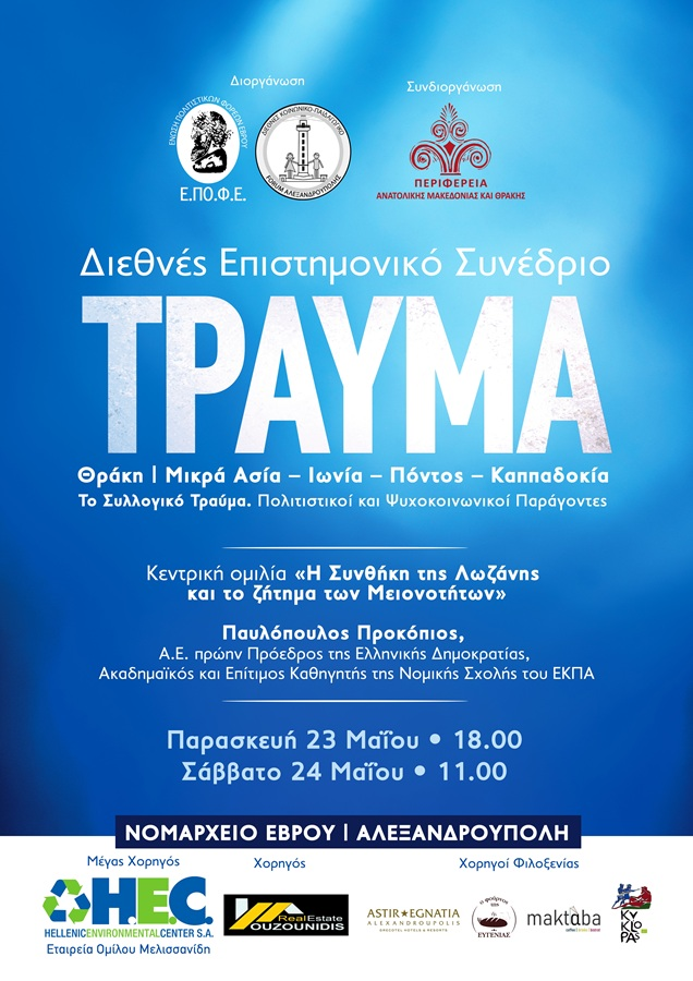 Ξεκινά σήμερα στην Αλεξανδρούπολη το Διεθνές Επιστημονικό Συνέδριο ΤΡΑΥΜΑ Θράκη • Μικρά Ασία | Ιωνία – Πόντος – Καππαδοκία Το Συλλογικό Τραύμα. Πολιτιστικοί και Ψυχοκοινωνικοί Παράγοντες