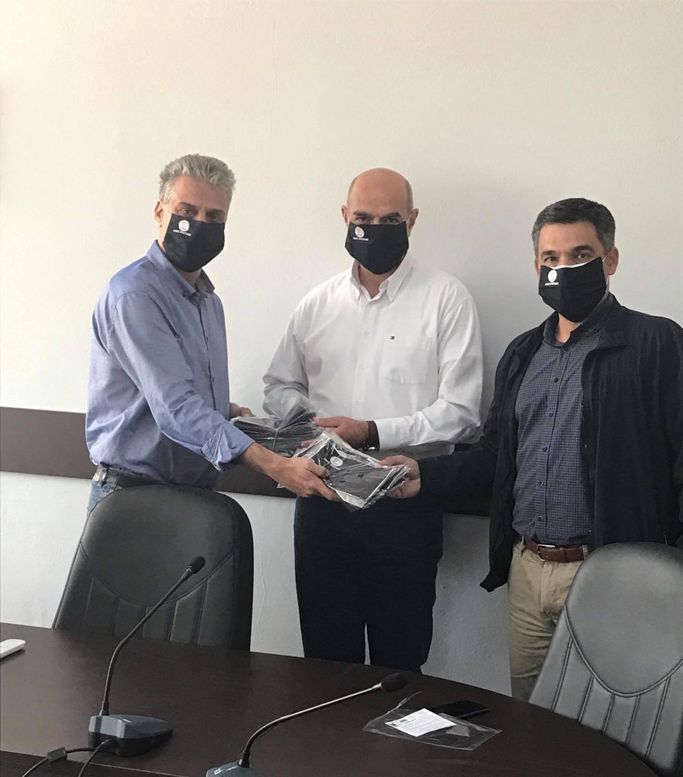 Την Τετάρτη 14/10/2020 ο Δήμος Ορεστιάδας παρέδωσε προστατευτικές μάσκες στον Κοσμήτορα της Σχολής Επιστημών Γεωπονίας & Δασολογίας κ. Κουτρούμπα Σπύρο, παρουσία του Προέδρου του τμήματος Αγροτικής Ανάπτυξης κ. Χατζησαββίδη Χρήστου, για την κάλυψη των αναγκών όλων των φοιτητών και καθηγητών των τμημάτων Αγροτικής Ανάπτυξης και Δασολογίας – Διαχείρισης Περιβάλλοντος και Φυσικών Πόρων του Δ.Π.Θ. στην πόλη της Ορεστιάδας.