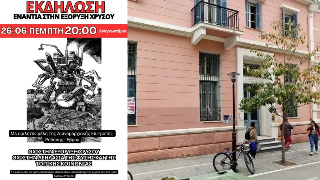 Ενημερωτική εκδήλωση ενάντια στην εξόρυξη χρυσού και δράσεις για την υπεράσπιση του Αναγνωστηρίου στην Αλεξανδρούπολη