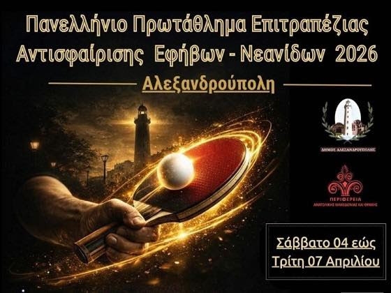 Η Αλεξανδρούπολη στο επίκεντρο του Πανελλήνιου Πρωταθλήματος Επιτραπέζιας Αντισφαίρισης