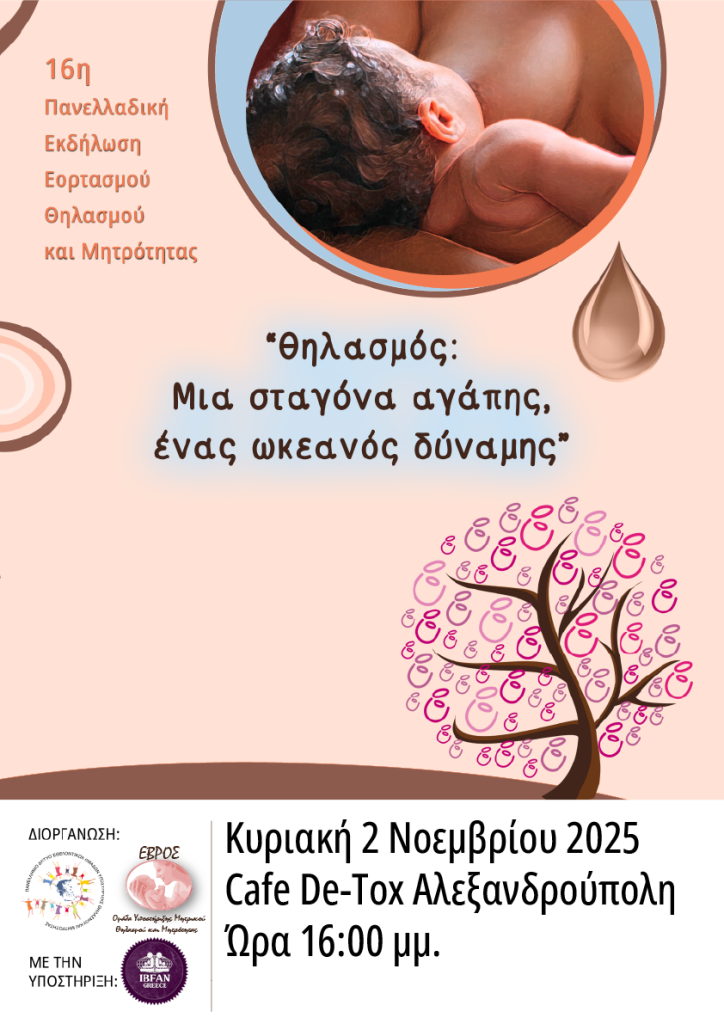 «Μια σταγόνα αγάπης, ένας ωκεανός δύναμης»: Έρχεται η 16η Πανελλαδική Εκδήλωση Θηλασμού και Μητρότητας