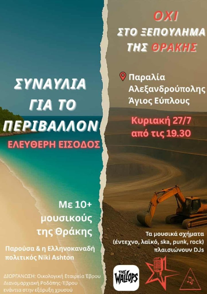 Συναυλία για το περιβάλλον στην Αλεξανδρούπολη: «ΟΧΙ στο ξεπούλημα της Θράκης»