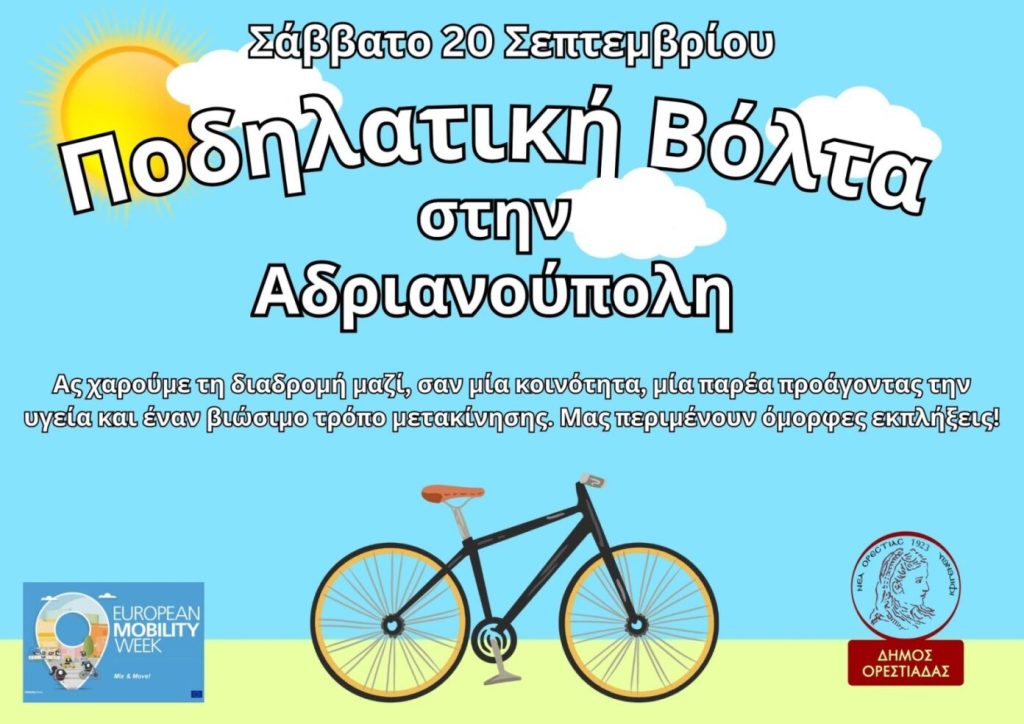 Μια διασυνοριακή δράση στο πλαίσιο της Ευρωπαϊκής Εβδομάδας Κινητικότητας ενώνει πολίτες Ελλάδας και Τουρκίας σε ένα ταξίδι με ποδήλατο για υγεία και βιώσιμη κινητικότητα. Ο Δήμος Ορεστιάδας προσκαλεί τους πολίτες σε μια μοναδική ποδηλατική εμπειρία το Σάββατο 20 Σεπτεμβρίου 2025, με προορισμό την Αδριανούπολη. Η εκδήλωση πραγματοποιείται στο πλαίσιο της Ευρωπαϊκής Εβδομάδας Κινητικότητας και στόχο […]